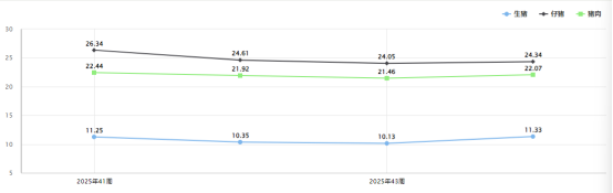 本周能繁母猪(二元杂母猪)价格为1661元/头,环比上涨0.39%,同比跌落13.45%。能繁母猪价格环比涨幅较小,反映出养殖户对后市决心略有康复,补栏志愿温文提高,但全体增幅有限,对长时间产能扩张持谨慎态度。